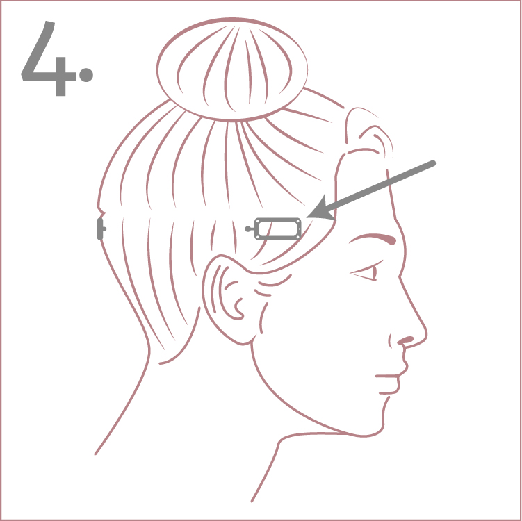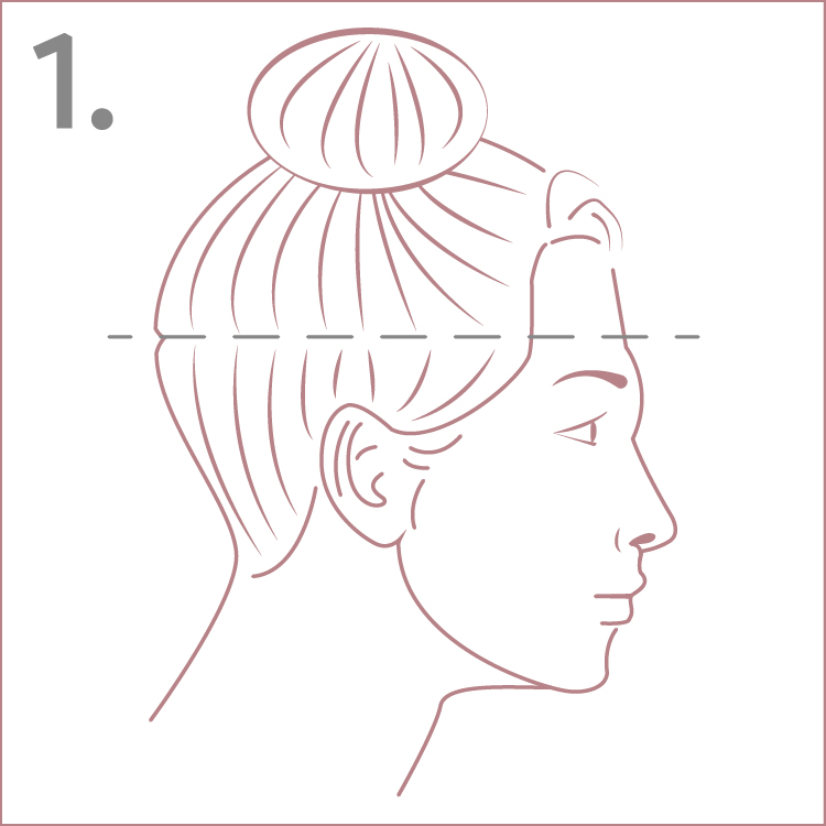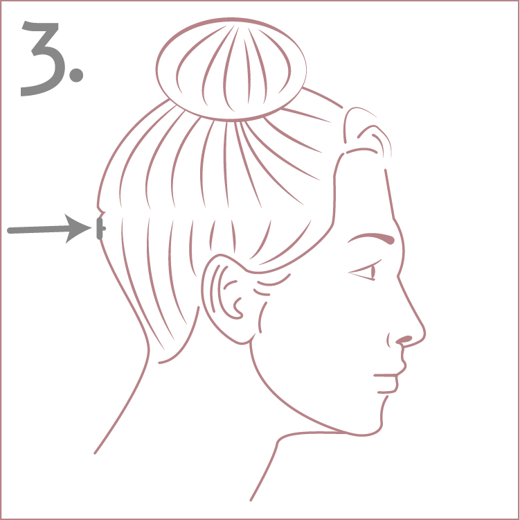1. Starting from about 1” above the ear: temporarily put all of your hair, that is above that line, into a top bun.