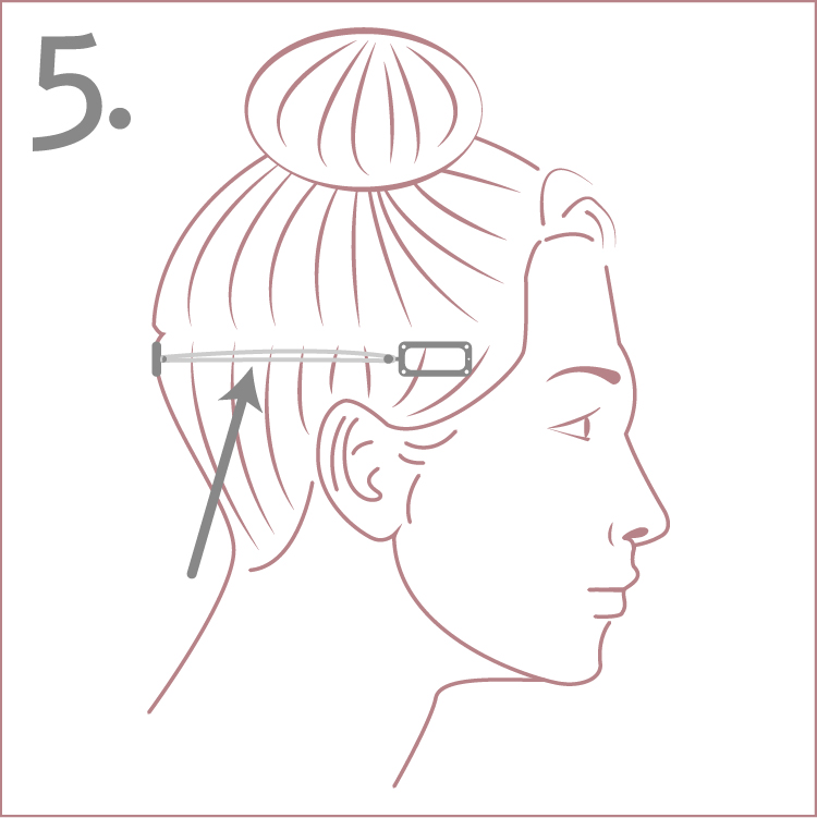 5. Attach a band from the side clip to the top center clip.